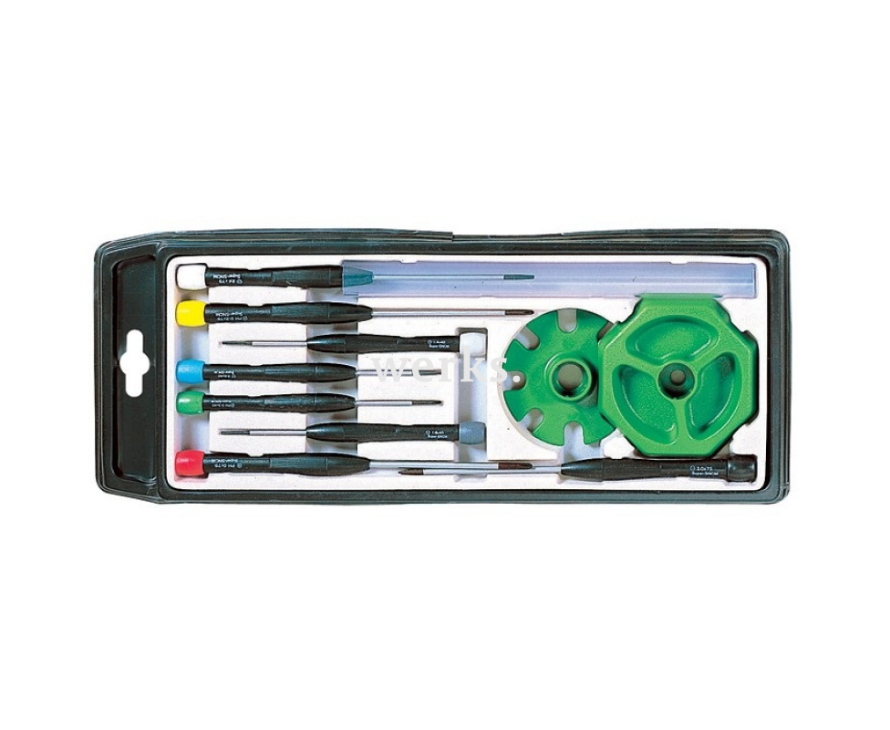 Набор ProsKit, состоящий из 8 прецизионных отверток с вращающимся колпачком. Жала выполнены из прочной, высококачественной хромированной стали, а рабочие концы дополнительно обработаны оксидным покрытием. Тонкие нескользящие рукоятки обеспечивают комфорт в работе. Упакован в компактный пластиковый кейс с собранной подставкой для хранения отверток. Состав набора: - отвертки SL (1.4x40, 1.6x40, 2.0x40, 2.4x75, 3.0x75 мм); - отвертки PH (PH0x75, PH0-2x75, PH0x40 мм); - сборная подставка для отверток. Размер футляра - 325x128x21 мм. Этот набор идеально подходит для точных ремонтных работ с электронными компонентами и деликатной механикой.