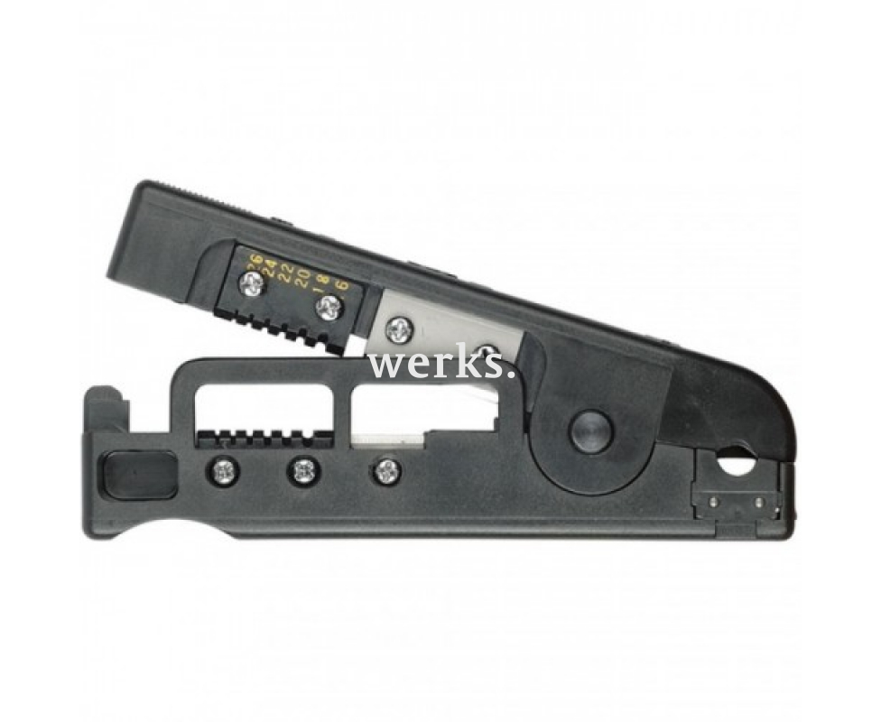 Инструмент предназначен для резки и снятия изоляции с коаксиальных и круглых экранированных кабелей. Корпус выполнен из прочного пластика, а лезвия изготовлены из высококачественной инструментальной стали SK5. Поставляется в блистерной упаковке. Тип кабеля - RG-58/RG-59/RG-62 (16-26 AWG). Длина инструмента - 125 мм. Вес - 50 г. Инструмент подходит для снятия изоляции с коаксиальных и круглых экранированных кабелей диаметром 3.5 - 9 мм².
