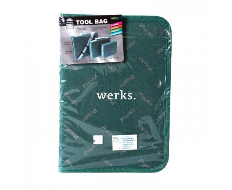Изготовлена из прочного и устойчивого полиэфирного волокна. Надежная застежка-молния. Внутри находятся регулируемые эластичные петли для фиксации инструмента. Внутренние стенки выполнены из жесткого пластика, что предотвращает деформацию. Максимальная нагрузка - 5 кг. Габариты - 255х180х50 мм. Вес - 280 г. Компактная и прочная сумка на молнии для хранения и транспортировки инструментов.