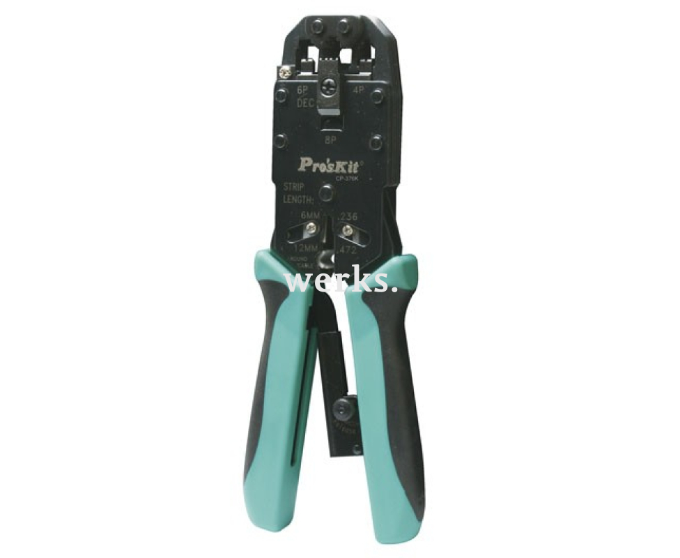 Клещи с заменяемой матрицей для обжима как одножильных, так и многожильных витых пар. Неноскользящие ручки из термопластичной резины обеспечивают удобство в использовании. Также могут выполнять функции стриппера для снятия изоляции с круглого провода и кабелереза. Корпус с предохранительным замком изготовлен из антикоррозийной углеродистой инструментальной стали S45C с твердостью 42°~48° HRC и чернением. Храповый механизм значительно упрощает процесс работы. Возможность одновременного обжима без замены губок. Поставляется в блистерной упаковке. Длина инструмента - 205 мм. Вес - 600 г. Предназначены для обжима разъемов 8P8C / RJ-45, 6P6C / RJ-12, 6P4C / RJ-11, 4P4C и 4P2C / RJ22, а также DEC 6P6C/RJ-11.