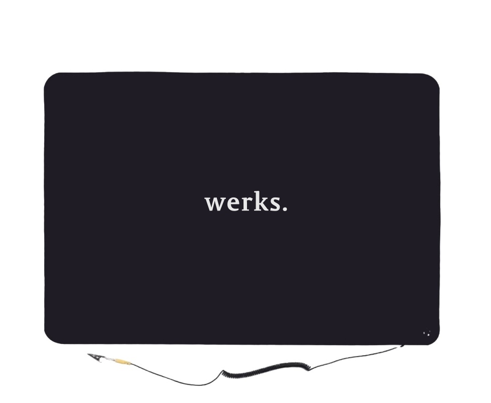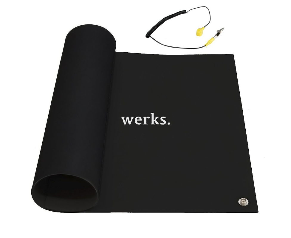 Профессиональный настольный коврик, устойчивый к кислотам, щелочам и износу, предназначен для ремонта техники, чувствительной к статическим электричествам. Изготовленный из синтетического каучука, этот коврик обеспечивает объемную проводимость, что позволяет эффективно отводить электростатические разряды и электрическое напряжение на заземляющий объект. В комплект входит коннектор для подключения витого провода с зажимом-крокодилом, а также дополнительный разъем для ESD браслета.