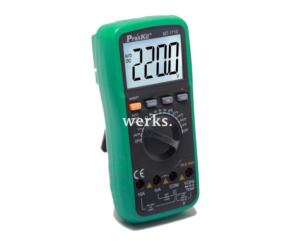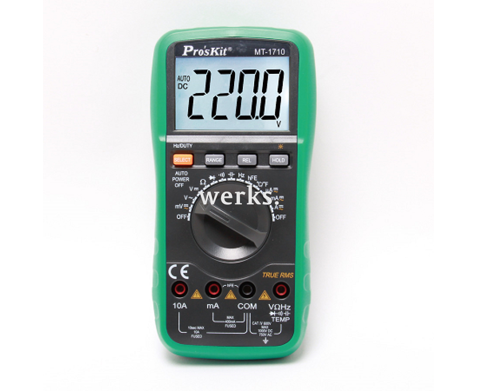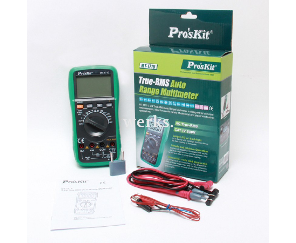 Четырехзначный ЖК-дисплей с LED-подсветкой. Автоматическая индикация полярности, прозвонка цепей с зуммером, функция удержания данных, автоматическое отключение, индикация выхода за пределы диапазона, сигнализация низкого заряда батареи, защита от перегрузки. Ручной выбор диапазонов измерений (кроме частоты и ёмкости). Базовая погрешность - не более 0,5%. Поставляется в упаковке. Напряжение постоянного тока - 400 мВ / 4/40 В / 400 В (± 0,5%), 1000 В (±1,0%). Напряжение переменного тока - 40 - 1 кГц / 40 - 200 Гц - 400 мВ (±1,6%), 4/40/400/750 В (±1,0%). Сила постоянного тока - 400 мкА / 4000 мкА (±1,0%), 40 мА / 400 мА (±1,2%), 10 A (±1,2%). Сила переменного тока - 40 ~ 1 кГц и 40 - 200 Гц: 400 мкА / 4000 мкА / 40 мА / 400 мА (±1,5%), 10 A (±2,0%). Электрическое сопротивление - 400 Ом (±0,8%), 4 кОм / 40 кОм / 400 кОм / 4 MОм (±0,8%), 40 MОм (±1,2%). Частота тока - 100 Гц / 1000 Гц / 10 кГц / 100 кГц (±0,5%), 1 MГц / 30 МГц (±0,5%). Электроемкость - 10 нФ (±5,0%), 100 нФ / 1 пФ / 10 пФ / 100 пФ (±3,5%), 1/10 / 100 мкФ (±5,0%). Питание - батарея 9V (NEDA 1640/6F22). Вес - 574 г. Прибор предназначен для измерения постоянного тока, постоянного и переменного напряжения, сопротивления, тестирования диодов и прозвонки электрических цепей. Отлично подходит для работы с электротехническим и электронным оборудованием.