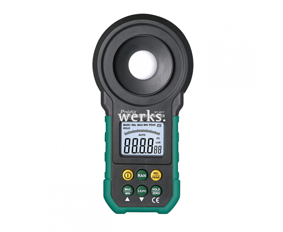 Компактный и точный измеритель интенсивности света. Он позволяет определять уровень видимого света, излучаемого люминесцентными, металлогалогенными, высоковольтными и лампами накаливания. Устройство поддерживает автоматическое и ручное переключение диапазонов измерений. Включает функцию автоматического отключения при бездействии, индикатор низкого заряда батареи, подсветку ЖК-дисплея, сохранение результатов измерений и калибровку нуля. Оснащен встроенным прецизионным фотодиодом и корректирующим светофильтром. Позволяет определять максимальные и минимальные значения замеров. Поставляется в удобной переносной сумке. Диапазон измерений - 20, 200, 2000, 20000, 200000 лк, 20 свечей, 200 свечей, 2000 свечей, 20000 свечей. Рабочая высота - максимум 2000 м. Условия эксплуатации: - температура от -10 до +50° С - относительная влажность от 0 до 85%. Погрешность - 3% (калибровка по лампе накаливания), 6% (калибровка по другому источнику света). Питание - 9 В батарейка DC. Вес - 154 г. Отлично подходит для измерения освещенности в офисах, библиотеках, больницах и учебных заведениях. Частота измерений - 2 раза в секунду.