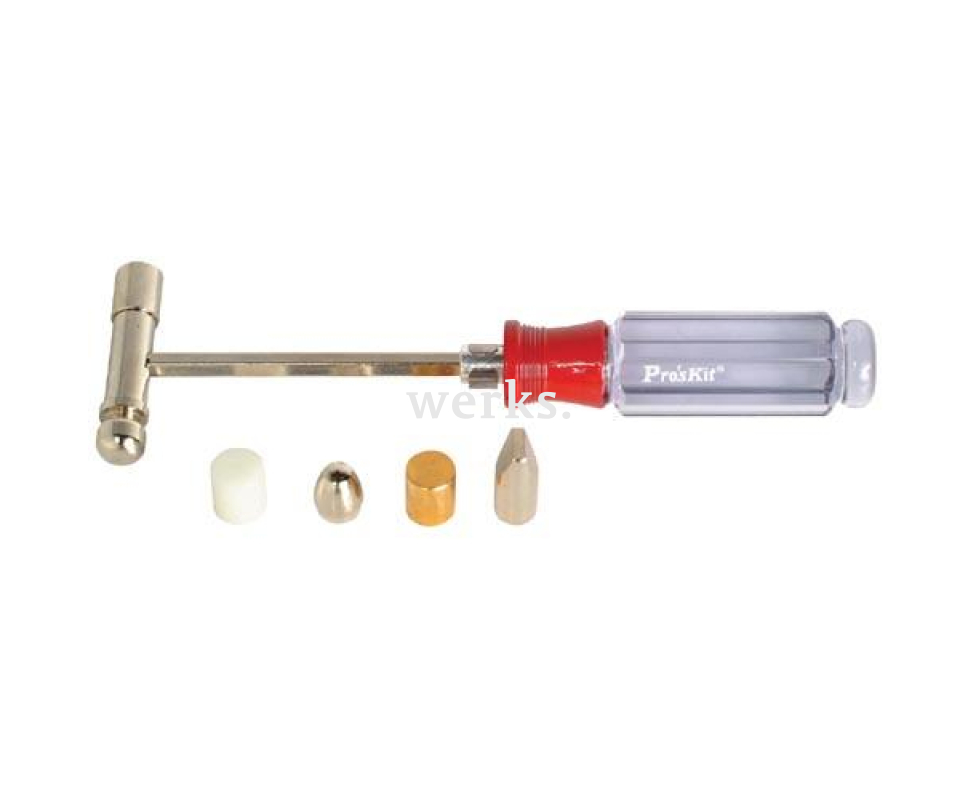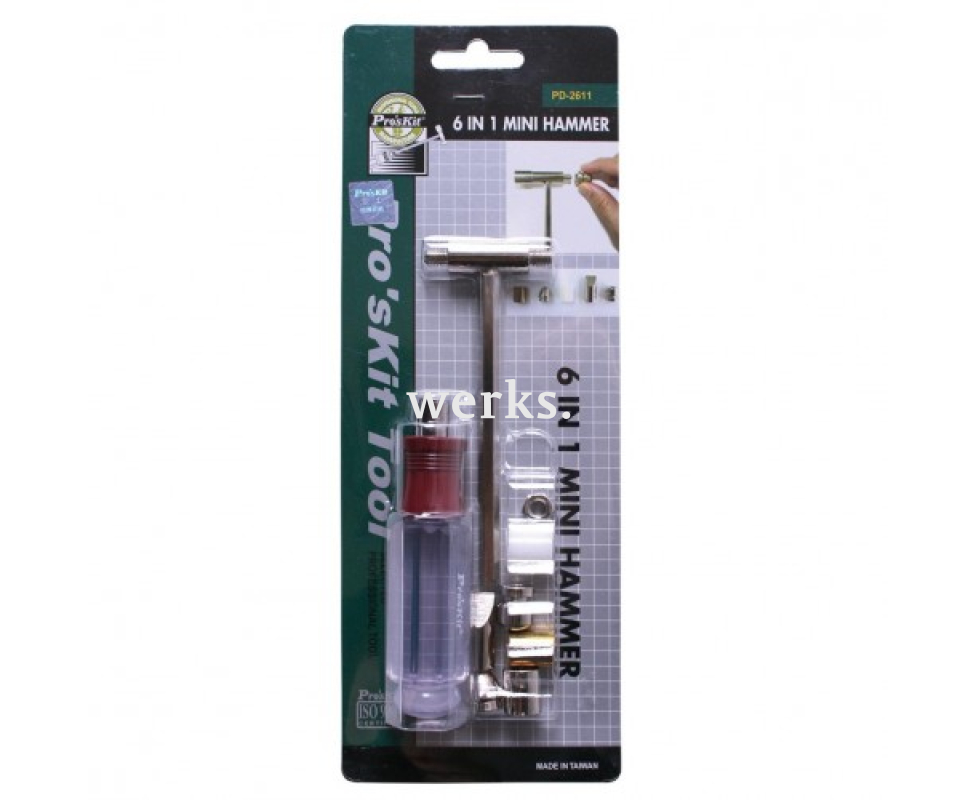 Компактный, легкий и прочный молоток с заменяемыми насадками. Шестигранная ручка с винтовыми концами для надежного крепления насадок. В набор входят две стальные округлые насадки, плоская стальная, плоская латунная, плоская пластиковая и насадка для работы с жестяными изделиями. Обрезиненная рукоятка обеспечивает надежный захват. Упакован в блистер. Длина - 185 мм. Вес - 114 г. Отлично подходит для мелких ремонтных задач.