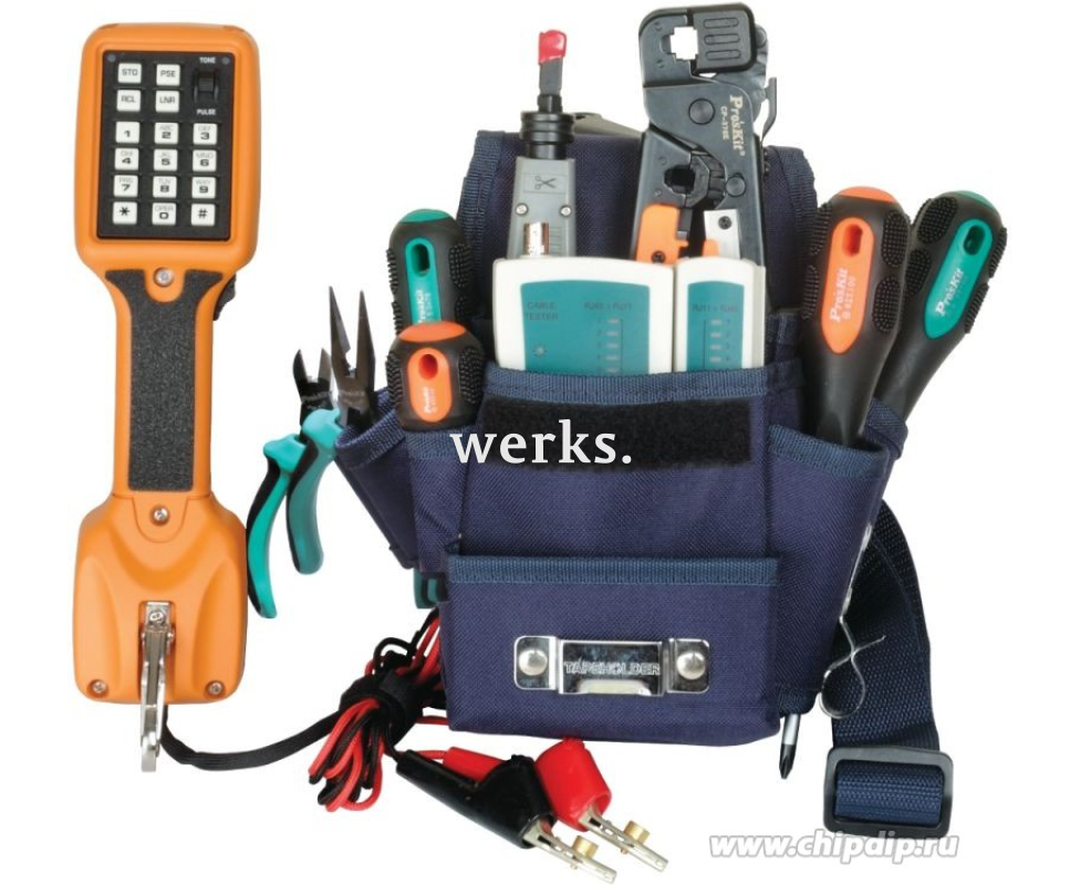 Профессиональный набор инструментов, необходимый для монтажа телефонных сетей и ремонта телекоммуникационных систем. Комплект поставляется в картонной упаковке с мягкой и прочной сумкой. Состав набора: - 1PK-036D длинногубцы 137 мм; - 1PK-037D кусачки 125 мм; - 808-376EN модульный инструмент для резки, зачистки и обжима; - CP-3140 инструмент для расшивки (110 лезвий); - MT-7051N модульный сетевой тестер; - MT-8001 трубка-тестер; - SD-602A отвертка 5x75 мм; - SD-607A отвертка 6x100 мм; - SD-607B отвертка #2x100 мм; - SD-620B отвертка #2x40 мм. Размер сумки - 320x290x95 мм. Этот набор инструментов для работы с витой парой идеально подходит для профессионалов, занимающихся установкой, ремонтом и диагностикой телефонных и телекоммуникационных сетей.