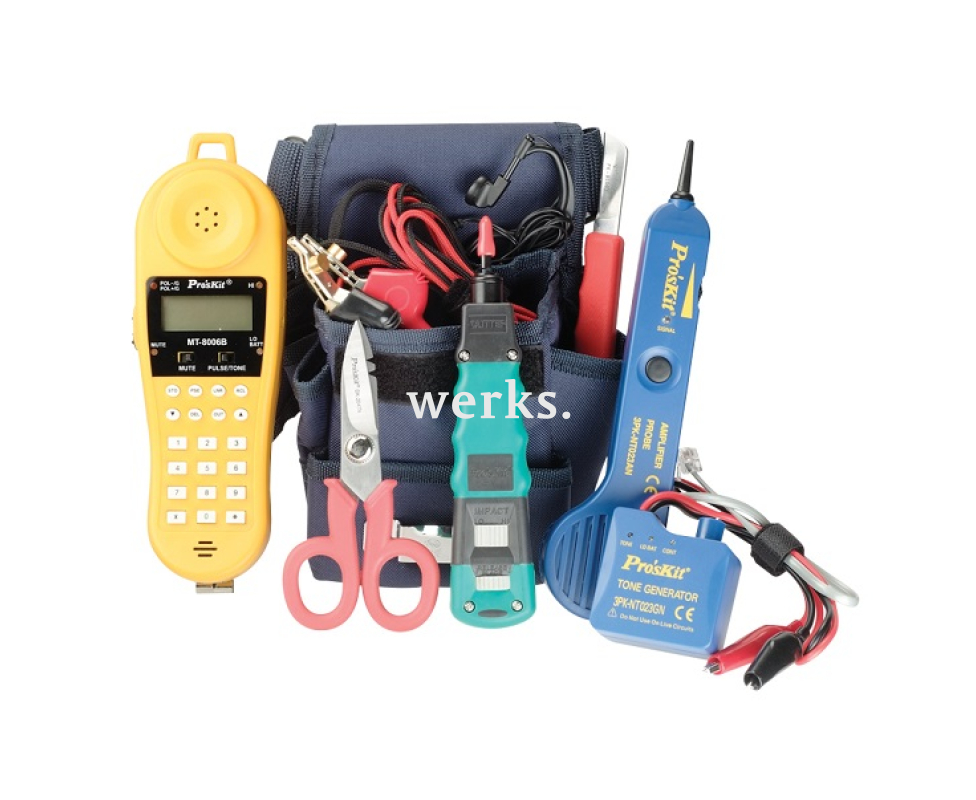 Профессиональный комплект инструментов, который требуется для обслуживания и ремонта телефонных сетей. Комплект поставляется в удобной и прочной сумке с ремнем, выполненной из полиэстера. Этот набор инструментов отлично подходит для диагностики, обслуживания и ремонта телефонных и телекоммуникационных сетей.
