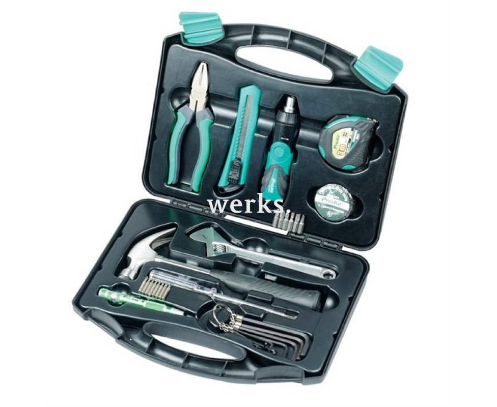 Профессиональный набор, включающий в себя самые востребованные и часто используемые инструменты для ремонта и монтажа. Упакован в удобный и прочный пластиковый кейс, который подходит для хранения и транспортировки. Состав набора: - 1PK-052DS Пассатижи 165 мм; - 9MS-001 Изолента; - 9SD-329H Индикатор напряжения; - 9DK-2060 Рулетка 3 м; - HW-008N Разводной ключ 8 дюймов; - HW-023 Набор шестигранных ключей (8 шт.) - 1.5, 2, 2.5, 3, 4, 5, 5.5, 6 мм; - PD-2612 Молоток с гвоздодером; - PD-513 Нож; - SD-9814 Отвертка с 9 сменными прецизионными насадками; - SD-9817 Отвертка-трещотка с магнитной фиксацией и набором из 6 бит. Размер кейса - 320x260x60 мм. Этот набор инструментов идеально подходит для выполнения монтажных и ремонтных работ как в домашних условиях, так и в автомобиле или мастерской.