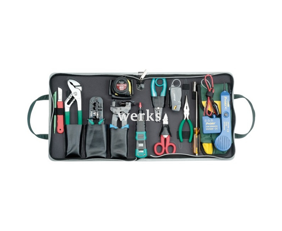 Профессиональный набор инструментов, необходимый для обслуживания и ремонта телекоммуникационных сетей. Комплект поставляется в прочном кейсе из полиэстера с молнией и наплечным ремнем. Состав набора: - 8PK-BL002 Нож для резки кабеля; - 1PK-H078 Лопатка-спаджер; - 3PK-NT023N Звуковой генератор; - 6PK-322 Поворотный коаксиальный стриппер; - 8PK-2206F Инструмент для снятия BNC/TNC коннекторов; - 8PK-3001D Стриппер; - CP-3148 Инструмент для расшивки кабеля с лезвиями 110/88 и 66; - CP-376TR Кримпер 4P/6P/8P; - DK-2040 Рулетка 3 м; - DK-2047N Ножницы; - CP-808 Опрессовочный инструмент; - 1PK-709 Длинногубцы 165 мм; - PN-P010N Комбинированные плоскогубцы 254 мм. Размер кейса - 385х295х65 мм. Вес - 3000 г. Этот набор инструментов идеально подходит для установки, проверки, обслуживания и ремонта телекоммуникационных и компьютерных сетей.