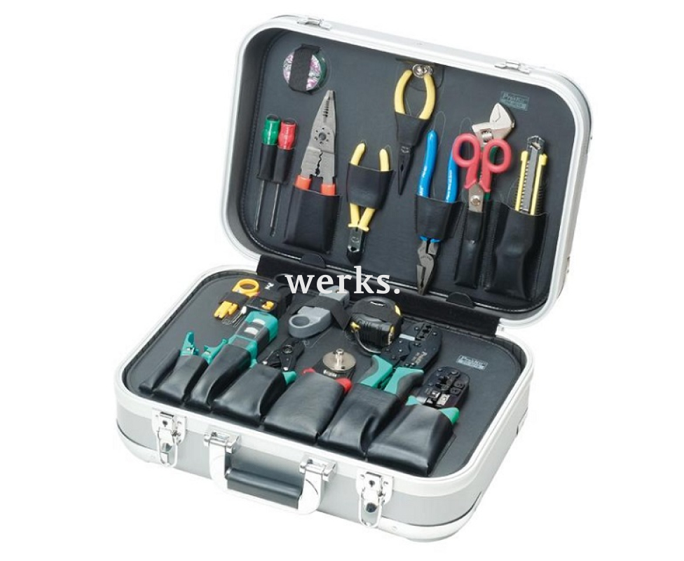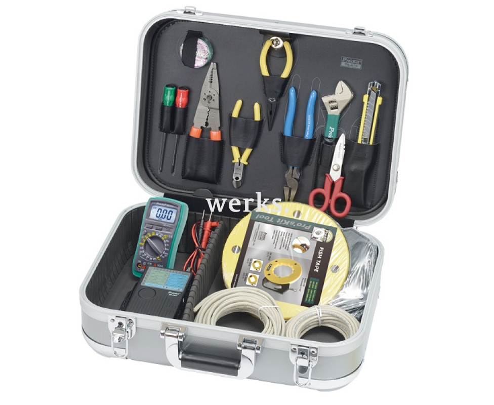 Профессиональный набор инструментов, необходимый для прокладки, обслуживания и ремонта сетей. Комплект поставляется в прочном алюминиевом кейсе с выдвижной паллетой. Товар доступен только при наличии на складе, предзаказ не осуществляется. Состав набора: - 1PK-708Y Бокорезы 160 мм; - 1PK-709Y Длинногубцы 165 мм; - PM-901 Плоскогубцы 215 мм; - 1PK-H028 Разводной ключ 8'; - MT-1210 Цифровой мультиметр; - MT-7057 Прибор для проверки кабелей; - 608-330 Кусачки для круглого кабеля; - 608-400 Кримпер; - 6PK-312S Стриппер для коаксиального кабеля; - 6PK-322 Стриппер для коаксиального кабеля; - 6PK-501 Стриппер; - 808-376I Модульный кримпер; - 89401A Отвертка шлицевая 3.2x75 мм; - 89401B Отвертка крестовая #0x75 мм; - 8PK-301C Кримпер для коаксиального кабеля; - 8PK-3148 Инструмент для расшивки кабеля; - 8PK-CT001 Стриппер для кабелей UTP/STP; - 8PK-CT004 Экстрактор для микросхем; - 8PK-CT009A Многоцелевой кримпер; - 9IT Изолента ПВХ; - 9LC-STP10 Сетевой кабель STP24x4P 10 м; - 9LC-UPT10 Сетевой кабель UTP24x4P 10 м; - DK-2032 Протяжка-катушка 15 м; - DK-2039 Нож; - DK-2040 Рулетка 3 м; - DK-2047N Ножницы для электрики. Размер кейса - 463x331x171 мм. Вес - 1632 г. Этот набор инструментов идеально подходит для установки, диагностики, обслуживания и ремонта сетей.