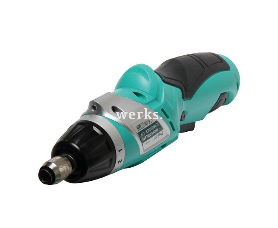 Компактный, легкий и мощный реверсивный шуруповерт с удобной рукояткой. Имеет 6+1 настраиваемых уровней крутящего момента и два различных положения рукоятки. В комплект входят 4 биты длиной 50 мм (прямой шлиц 5.0, 6.0, Phillips PH1, PH2) и зарядное устройство на 220 В 50 Гц / 6 В 300 мА. Оснащен светодиодной подсветкой и индикатором зарядки. Поставляется в двойном блистере. Питание - 220-240 В / 50-60 Гц. Выходное напряжение - 6 В DC 300 мА. Батарея - литий-ионная (3,6 В, 1300 мАч). Время полной зарядки - 3-5 часов. Продолжительность работы - 60 минут. Скорость вращения без нагрузки - 0-200 об/мин. Выходной крутящий момент - 3 Нм (30,6 кгс-см / 26,55 lbf-in). Бесключевой патрон для бит - 1/4' (6,3 мм). Габариты - 235 (170х145 - под углом) мм. Стандартная вилка - тип F. Вес - 722 г. Отличный инструмент для завинчивания и отвинчивания шурупов в мастерских, автомобилях и домашних условиях.
