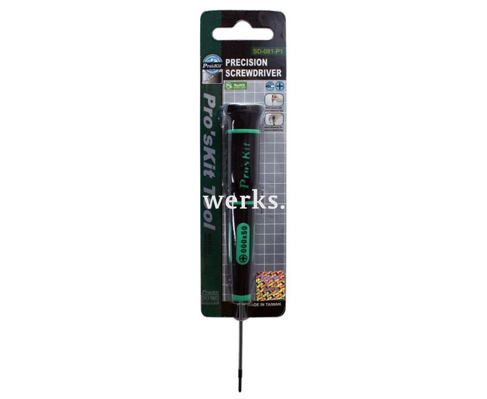 Прецизионная крестовая отвертка Phillips Pro'sKit SD-081-P1 оснащена нескользящей ручкой, выполненной из термостойкой резины с добавлением нейлона. Головка отвертки легко вращается. Лезвие изготовлено из высококачественной хром-ванадиймолибденовой стали и поставляется в блистерной упаковке. Длина ручки составляет 100 мм. Длина жала — 50 мм. Размер шлица Phillips — PH000х50 мм. Вес — 27 г. Этот инструмент предназначен для точных работ, таких как ремонт компьютеров, мобильных телефонов и другой электроники, а также для использования в домашних условиях и хобби. Он будет полезен как домашним мастерам, так и профессионалам.