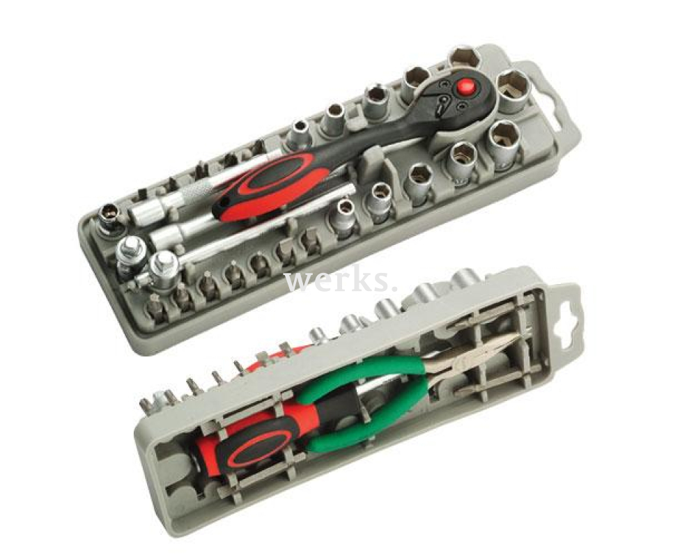 Набор бит с трещоткой и длинногубцами включает 35 предметов. В комплект входят: рукоятка-трещотка, удлинители, битодержатель, карданный шарнир 1/4', Т-образный стержень, длинногубцы и 27 различных бит и торцевых головок. Изготовлен из высококачественной хромванадиевой стали. Поставляется в удобном футляре для хранения и транспортировки инструмента. Товар доступен только из наличия на складе, предзаказ не осуществляется. Типы шлицев: - SL (6, 7 х 50 мм; 3, 4, 5, 6 х 1/4'), - PH (PH1, PH2, PH3 х 1/4'; PH2, PH3 х 50 мм), - TORX (T10, T15, T20, T30), - головки HEX NUT (4, 5, 5.5, 6, 7, 8, 9, 10, 11, 12, 13). Вес - 922 г. Этот многофункциональный набор подходит для электромонтажных работ, слесарных задач и обслуживания малогабаритной техники.