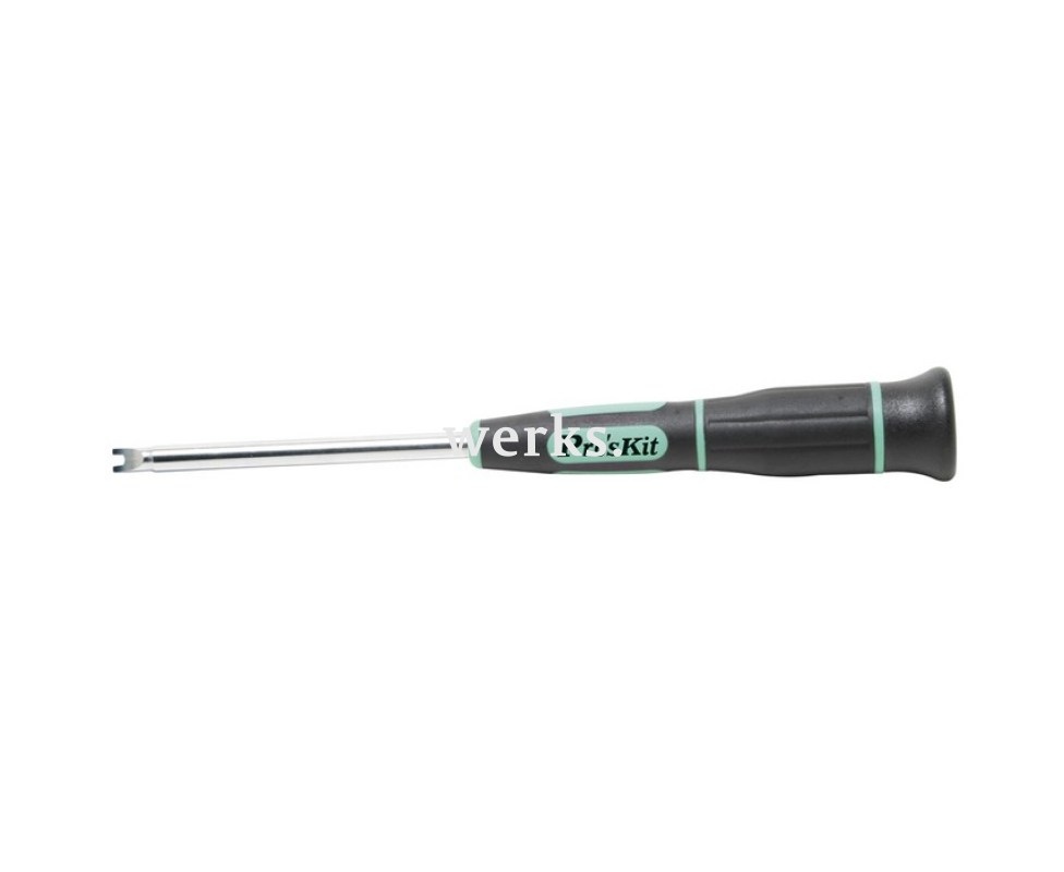 Прецизионная двухштырьковая отвертка Spanner ProsKit оснащена нескользящей рукояткой, выполненной из термостойкой резины с добавлением нейлона. Головка отвертки легко вращается. Лезвие изготовлено из высококачественной хром-ванадиймолибденовой стали и имеет антикоррозийное покрытие. Размер спаннерной головки соответствует стандартам Европы. Размер профиля Spanner - 2,5 мм. Вес - 61 г. Этот инструмент разработан специально для точных работ с двухштырьковыми (спаннерными) винтами, что делает его отличным выбором как для домашних мастеров, так и для профессионалов.