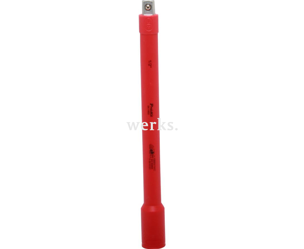 Диэлектрический VDE удлинитель 3/8' ProsKit для торцевых ключей. Изготовлен из прочной кованой хромванадиевой стали 50BV30. Имеет сертификаты IEC 60900: 2004, VDE и DIN. Обладает многослойной изоляцией. Безопасен для работы с узлами и компонентами под напряжением до 1000 В переменного тока. Длина - 250 мм. Рабочий привод - 1/2'. Вес - 450 г. Удобный изолированный удлинитель, идеально подходящий для работы с оборудованием в труднодоступных местах под напряжением. Удовлетворит потребности как домашних мастеров, так и профессионалов.