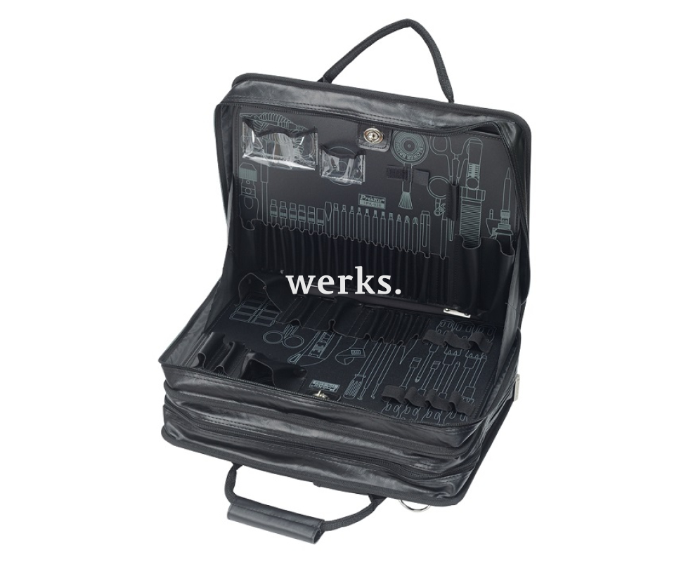 Изготовлена из высококачественного и прочного кожзаменителя и ПВХ. Оснащена удобными ручками для переноски и молниями. В комплект входят 3 дополнительные паллеты с карманами для хранения инструментов. Размеры - 400х300х150 мм. Вес - 3626 г. Идеально подходит для хранения и удобной транспортировки ручных инструментов и приборов.