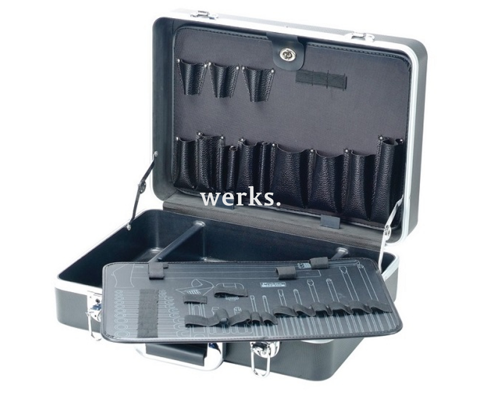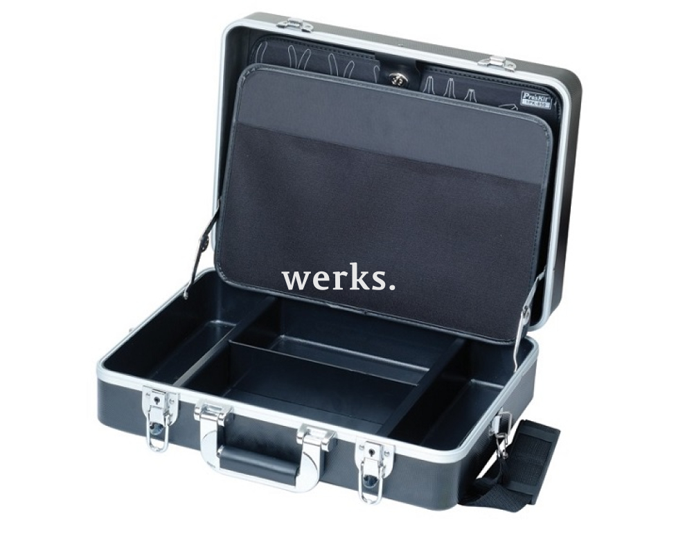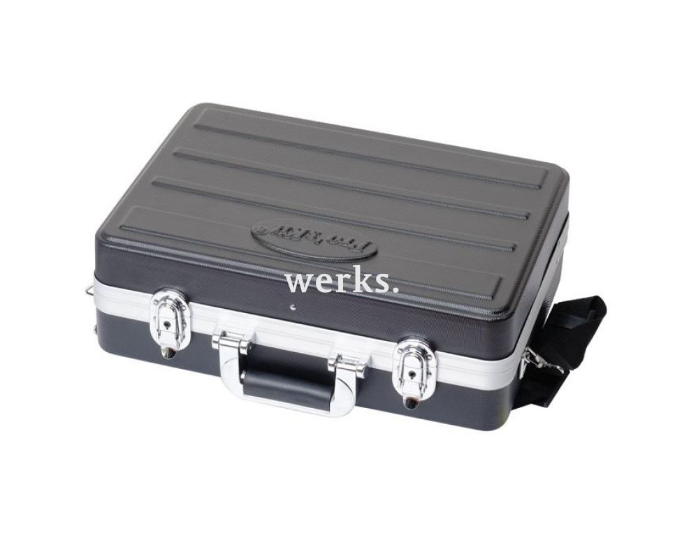 Просторный, удобный и прочный пластиковый кейс с регулируемым плечевым ремнем для комфортной транспортировки. Изготовлен из стойкого к износу и ударопрочного пластика на жестком алюминиевом каркасе. Вместительный нижний отсек разделен на 4 части с помощью перегородок. В комплект входят две дополнительные съемные паллеты с карманами для инструмента. Два надежных замка с ключами обеспечивают безопасную переноску содержимого. Хромированная ручка литой конструкции. Размеры - 435x310x145 мм. Вес - 3700 г. Идеален для организованного хранения и транспортировки инструмента.