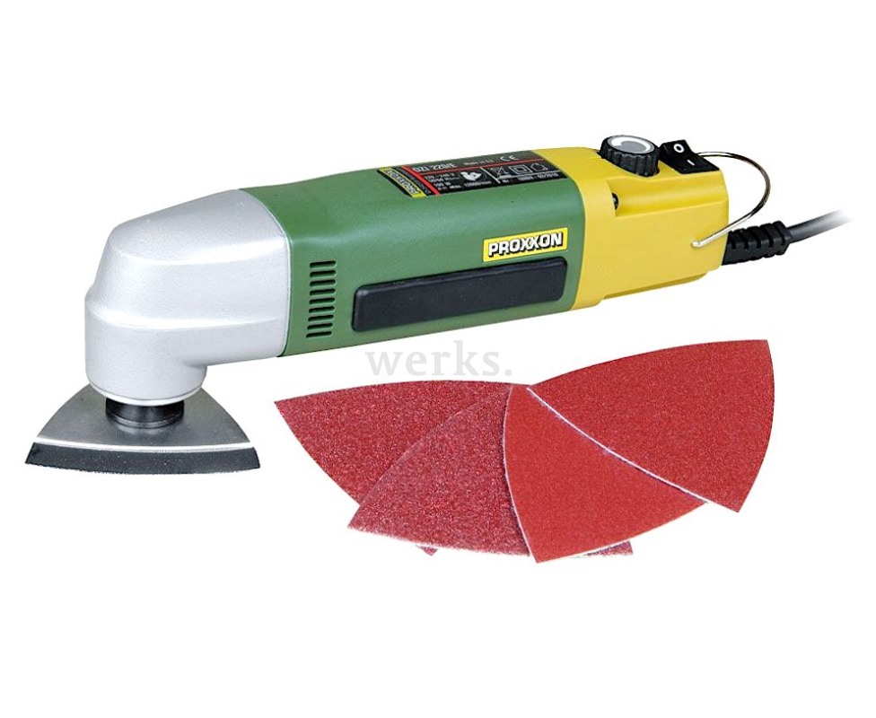 Вибрационная шлифовальная машина с дельта-образным резиновым держателем для абразивной бумаги. При необходимости можно установить отрезной алмазный круг или полотна различной ширины. Головка выполнена из литого под давлением цинка, а корпус изготовлен из армированного стекловолокном полиамида. Оснащена электронным регулятором скорости. Колебательные движения обеспечивают низкий уровень вибрации и шума во время работы. Шлифовальная поверхность имеет липучку для быстрой замены абразивных треугольников. Также возможно использование обрезных дисков. В комплект входят 4 шлифовальных треугольника (зернистость К80 - 2 шт., К150 - 1 шт., К240 - 1 шт.). Инструмент предназначен для резки, обдирки, финишной обработки, шлифовки, полировки и резьбы по дереву в труднодоступных местах. Позволяет обрабатывать сталь, цветные металлы, стекло, керамику, дерево и пластик. Поставляется в прочном полипропиленовом кейсе. Диапазон рабочих скоростей - 3000-10000 циклов/мин. Рабочее напряжение - 220-240 В, 50 Гц Потребляемая мощность - 100 Вт Размер рабочей поверхности - 65х65х65 мм Тип изоляции - 2 класс безопасности