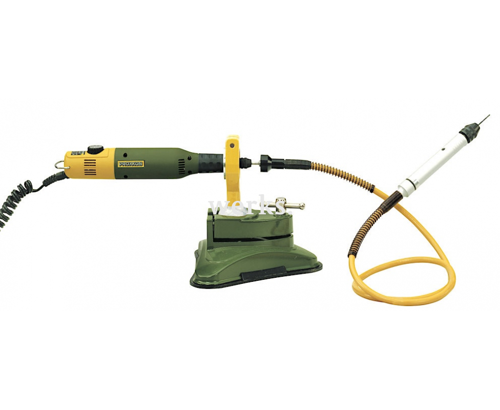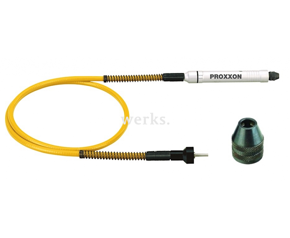 Удобный инструмент для работы с расходными материалами различных диаметров. Оснащен алюминиевой рукояткой. Стальной шлифованный вал на двух шарикоподшипниках с трехлепестковым бесключевым патроном (от 0.3 до 3.2 мм) для цангового зажима Micromot. На приводном конце вала также имеется шарикоподшипник. Гибкий кожух обеспечивает передачу мощности без перегрева при изгибах. Идеален для гравировки, шлифовки, фрезеровки и сверления в труднодоступных местах. Рекомендуется использовать только с бормашинами Proxxon. Максимальная скорость вращения - 25000 об./мин. при мощности бормашины 100 Вт. Общая длина - 100 см. Время непрерывной работы - 15 мин.