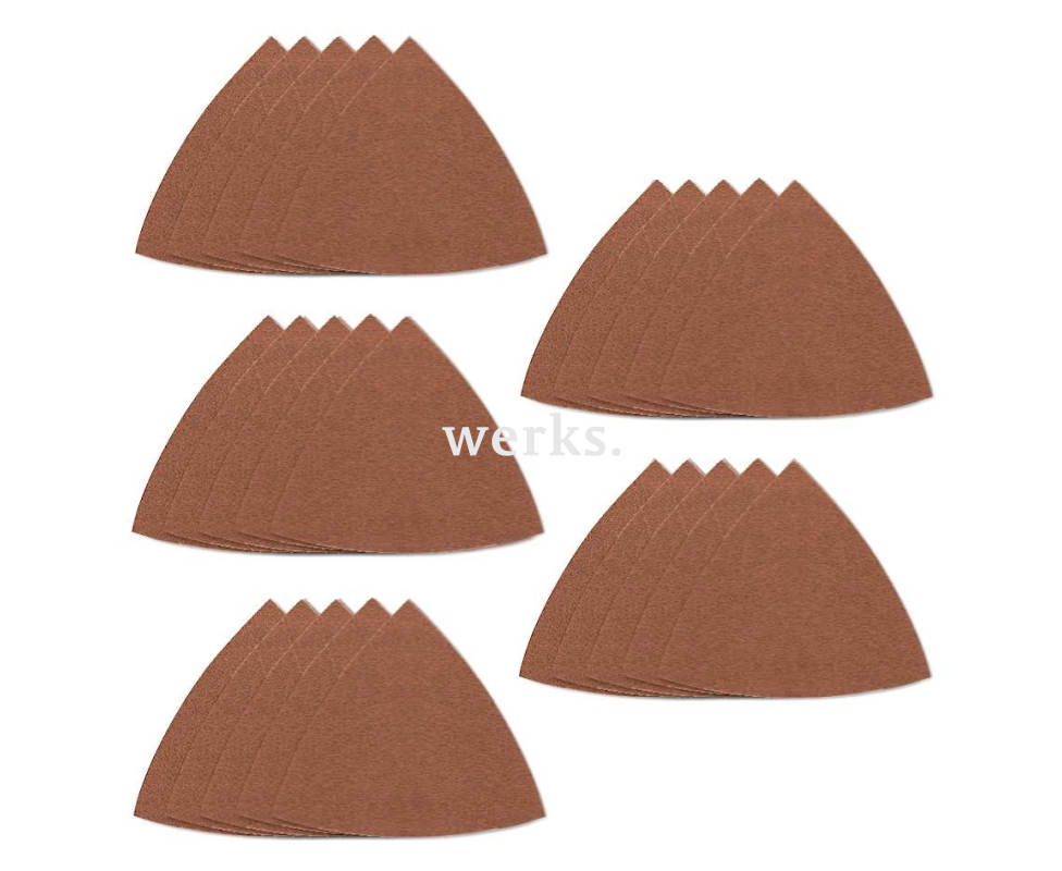 Самоклеящиеся треугольные абразивные лепестки из корунда с зернистостью К150, выполненные на прочной бумажной основе. Размеры составляют 65х65х65 мм. Для снижения засорения полотна между абразивными частицами добавлен связующий компонент. Эти лепестки предназначены для использования с шлифовальной машиной OZI/E.