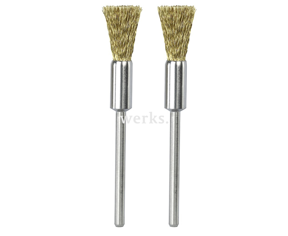 Изготовлены из проволоки из латуни. Длина хвостовика составляет 44 мм, диаметр 2.35 мм. Используются для очистки мест пайки и сварки, а также для чистки печатных плат и электронных компонентов. Подходят для работы с латунью, латунными сплавами, драгоценными металлами, полудрагоценными камнями, деревом и пластиком. Рекомендуется применять с легким нажимом и установленной скоростью вращения. Также могут быть использованы в стоматологическом протезировании и на производственных линиях.