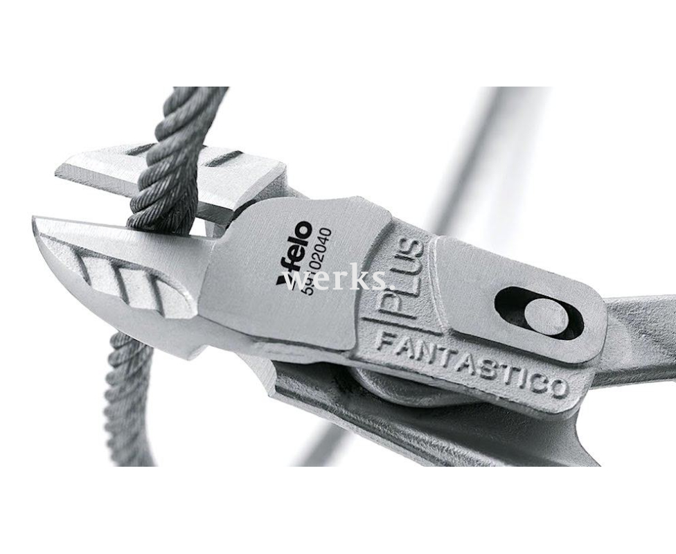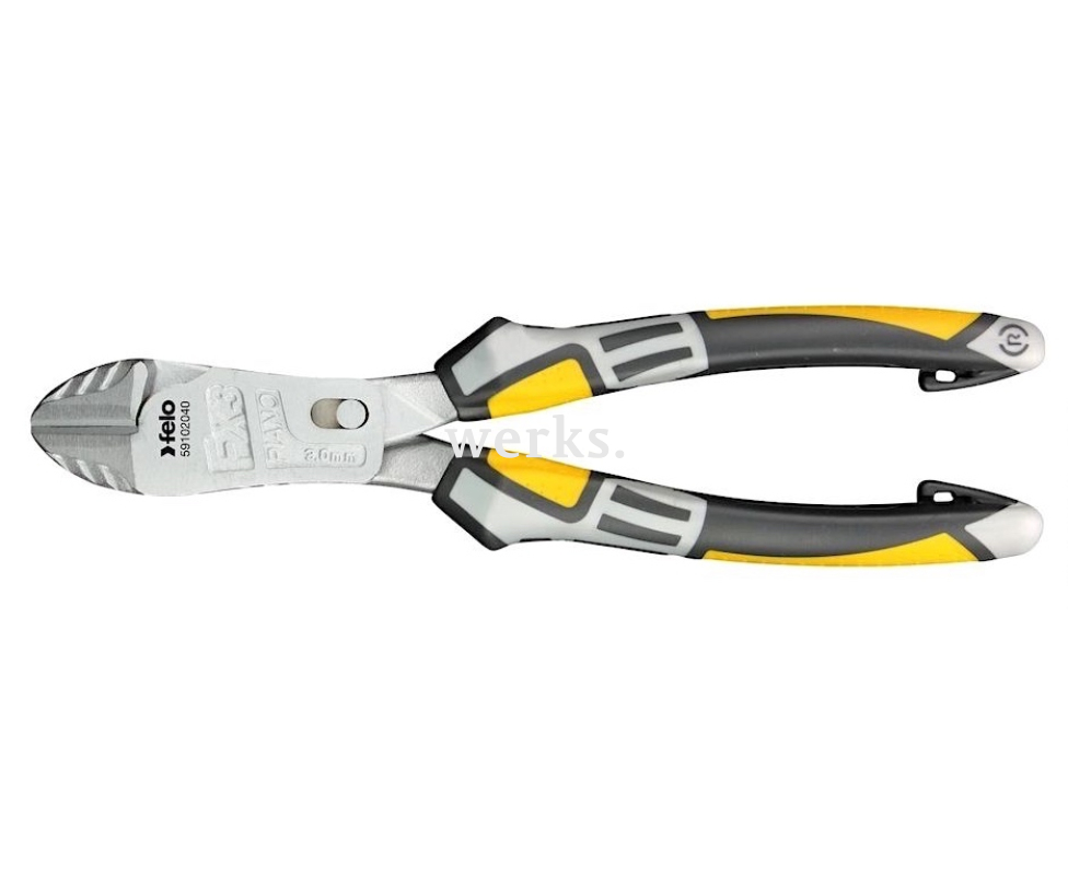 Устойчивые усиленные диагональные кусачки (бокорезы) длиной 200 мм с матовой хромированной поверхностью. Изготовлены из высококачественной хромванадиевой стали, закаленной в масле. Твердость режущих кромок составляет HRC 60-64. Отлично справляются с резкой стальных прутков диаметром до 4,5 мм. Двухкомпонентные защитные рукоятки обеспечивают комфортное использование без скольжения, а разъем SystemClip предназначен для страховочных строп при работе на высоте.
