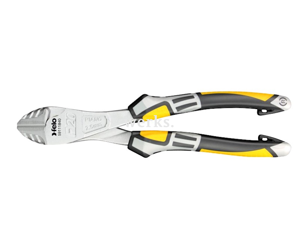 Устойчивые усиленные диагональные кусачки (бокорезы) длиной 180 мм с матовым антибликовым хромированием рабочей части. Изготовлены из кованой высококачественной хромванадиевой стали, закаленной в масле. Твердость режущих кромок составляет HRC 60-64. Отлично справляются с резкой стальных прутков диаметром до 3,8 мм. Двухкомпонентные защитные накладки обеспечивают комфортную работу без проскальзывания, а разъем SystemClip предназначен для страховочных строп при работе на высоте.
