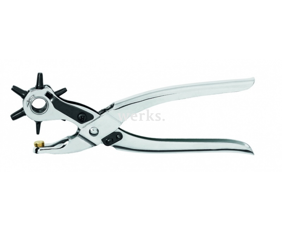 Клещи просечные профессионального уровня с револьверной головкой Rennsteig RE-1052204, никелированные, имеют длину 260 мм и массу 280 г. Они изготовлены из высококачественной листовой стали. Инструмент револьверного типа оснащен шестью вращающимися пуансонами с диаметрами 2, 2,5, 3, 3,5, 4 и 5 мм.