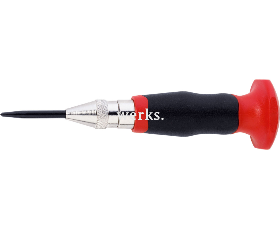 Автоматический кернер Rennsteig RE-430231 с усилием 180N-250N, длиной 130 мм и весом 140 г, предназначен для разметки лунок, необходимых для начальной установки сверла, а также для нанесения кернов на материал при первоначальной установке инструмента. Этот инструмент обеспечивает точное кернение деталей без смещения и является незаменимым в области металлообработки.