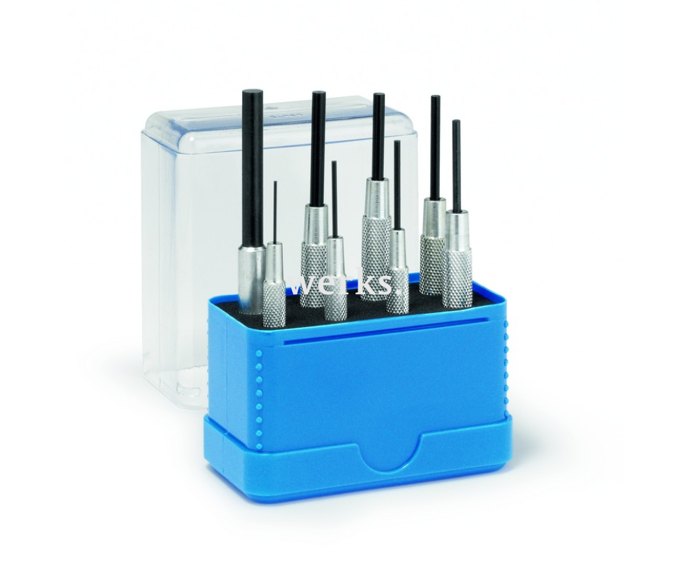 Профессиональный набор выколоток Rennsteig с направляющей втулкой в контейнере RE-4571025, состоящий из 8 предметов. Предназначен для удаления крепежных элементов из отверстий различного диаметра в металлических поверхностях. Этот универсальный комплект выколоток идеально подходит для использования в автосервисах.