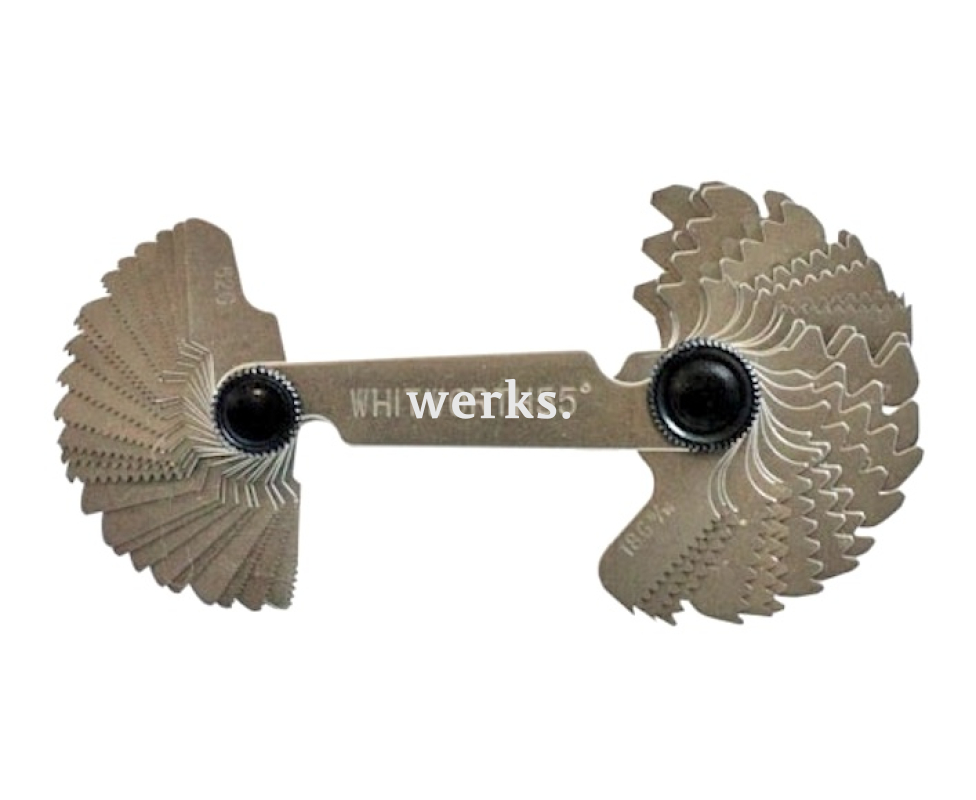 Компактный шаблон для проверки резьбы Whitworth Schut 856.457 включает 28 элементов и весит 45 г. Это универсальный набор для определения размеров резьбы. Он состоит из набора зубчатых пластин, удобно размещенных в компактном карманном формате и надежно зафиксированных в специальной обойме.