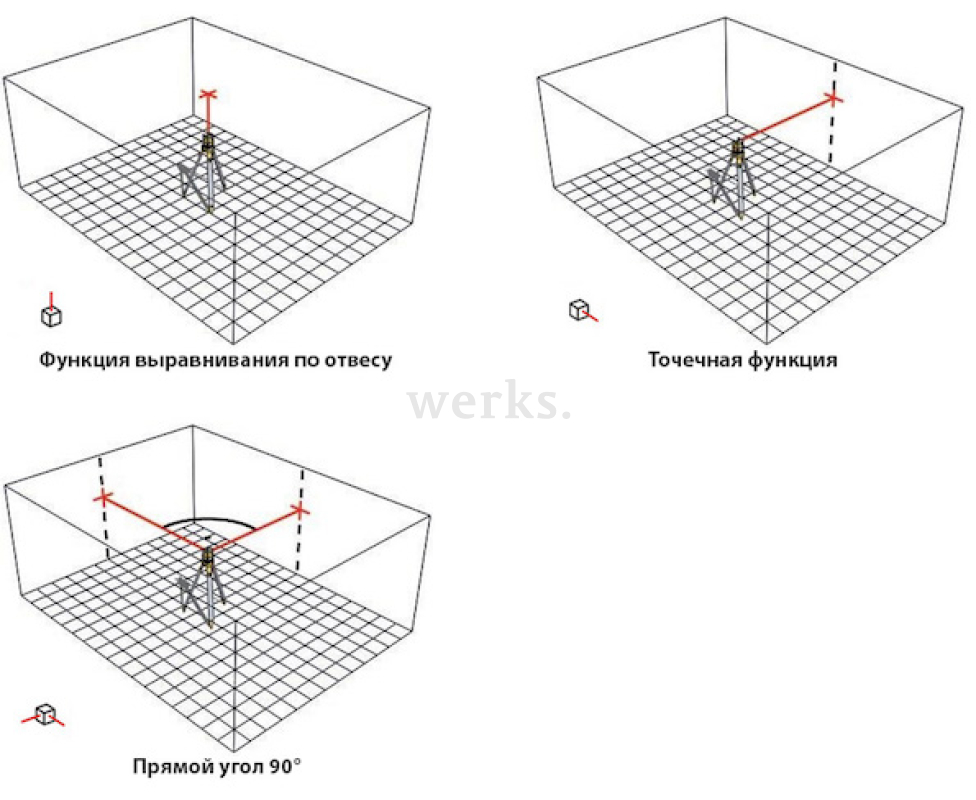 Компактный лазерный уровень с самонивелированием, который создает яркие и четкие лазерные точки. Устройство генерирует пять лазерных точек: две вертикальные (вверх и вниз) и три горизонтальные, формируя два прямых угла. Высота и отвес передаются с высокой точностью, а построение углов происходит мгновенно. Оснащен лазером II класса с длиной волны 635 нм. Привод осуществляется с помощью двигателя. Имеет универсальное применение: три вертикальные линии, одна горизонтальная линия и функция отвеса. Быстрая проверка прямых углов. Возможность работы с линейным ресивером обеспечивает точность измерений на больших расстояниях. Поворотный прочный корпус с микроштативом для регулировки высоты и ударопрочным кожухом Softgrip. Резьба 1/4' для подключения к штативу. Лазер можно установить на полу, штативе, металлических предметах с помощью встроенных магнитов или на настенном кронштейне. Предназначен для использования как внутри, так и снаружи помещений: для монтажа металлических конструкций, железобетонных изделий, установки межкомнатных перегородок, выравнивания фасадов, а также для отделочных и монтажных работ. В комплект входят поисковый экран, настенный кронштейн, батарейки и поясная сумка. Степень защиты: IP54 Диапазон самонивелирования: ±4,5° Точность нивелирования: ±0,3 мм/м Точность по линии луча отвеса вверху: ±0,3 мм/м Точность по линии луча отвеса внизу: ±0,4 мм/м Точность угла 90°: ±0,2 мм/м Дальность действия (с ресивером): 100 м Дальность видимых точек: 30 м Мощность: < 1 мВт Время работы: до 20 часов Питание: 3 х 1,5 В батарейки AA (в комплекте)