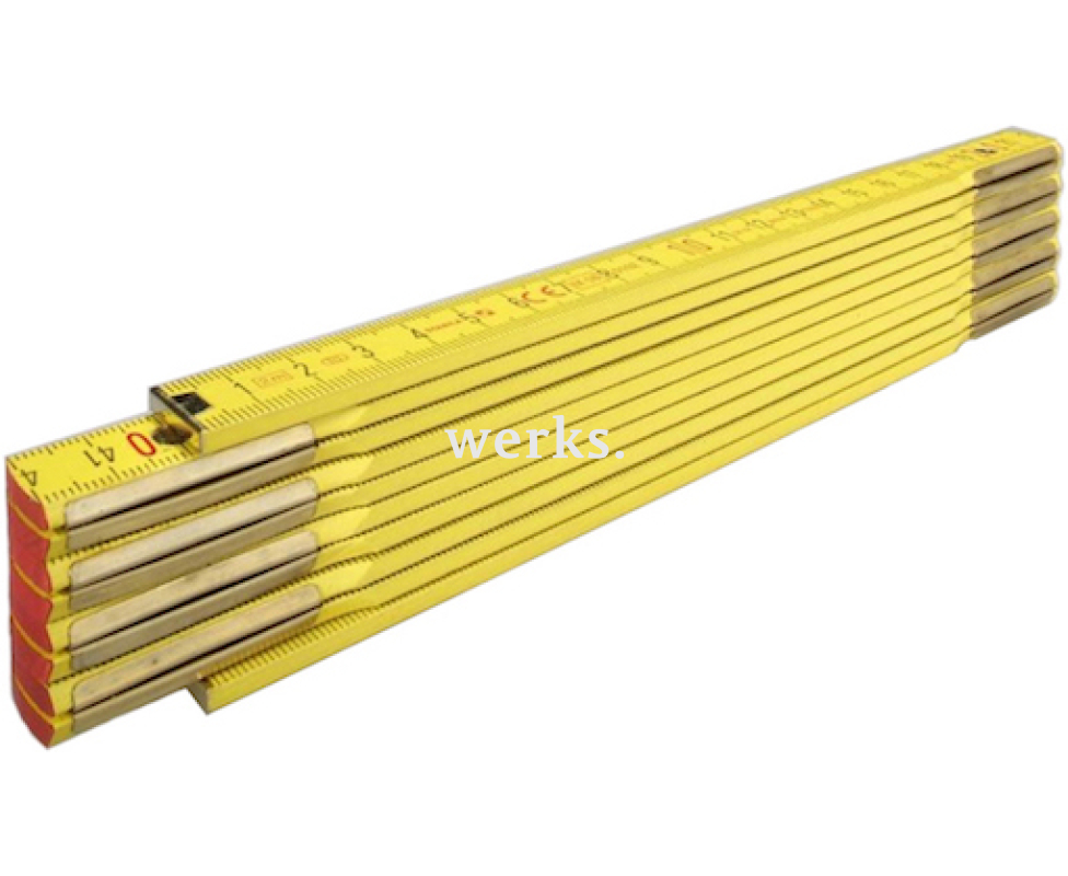 Изготовлен из качественного бука. Большие черные цифры обеспечивают легкость восприятия; числа, кратные 10, выделены красным цветом. Шкала представлена в сантиметрах и миллиметрах с обеих сторон. Прочные шарнирные пластины обвивают деревянную рейку. Скрытые заклепки и пружины из закаленной стали гарантируют плавность работы и точность фиксации. Класс точности: III Количество секций: 10 Толщина рейки: 3,3 мм Шкала: двусторонняя