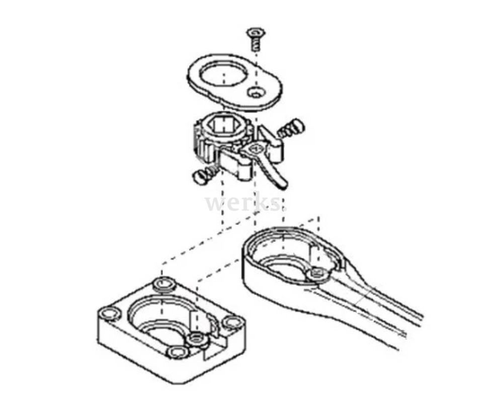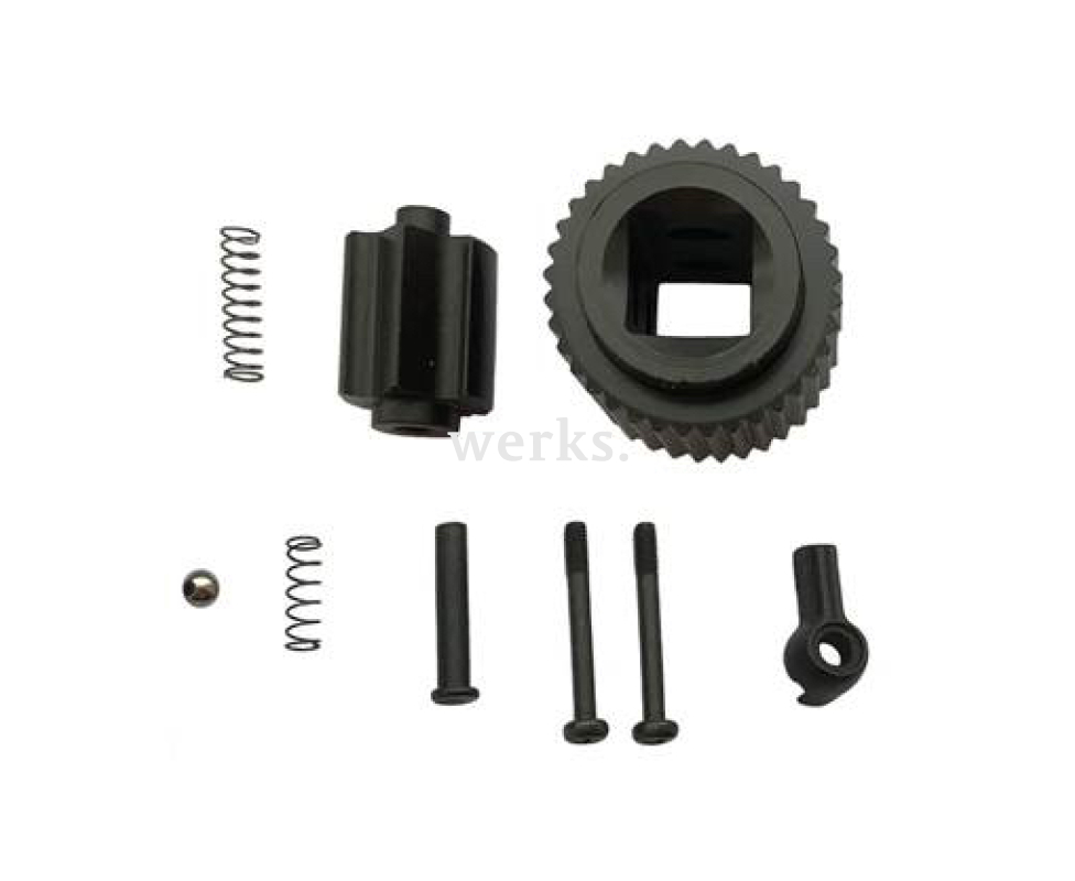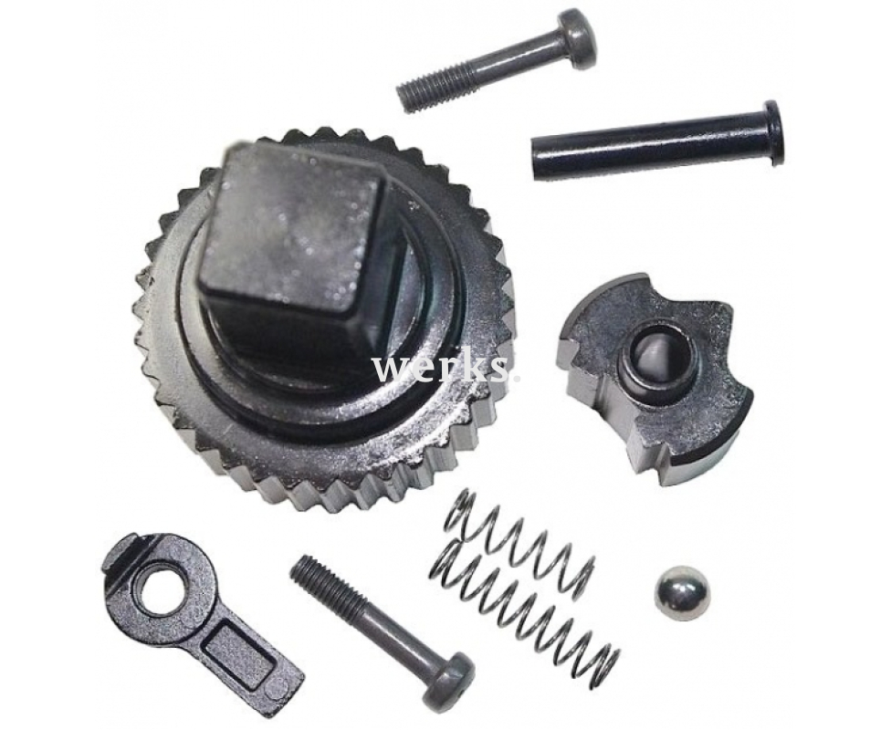 Инструмент предназначен для восстановления динамометрического ключа 721/30 Quick. В набор входят: вращающаяся часть, фиксирующий диск, рычаг для смены направления, штифт для рычага смены направления, шарик, две сжатые пружины и два фиксирующих винта. Соединительный квадрат 59010007 не включен в комплект и продается отдельно.