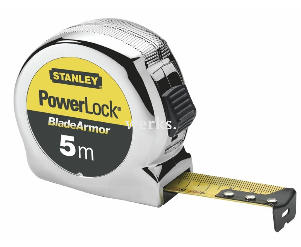 Рулетка Stanley длиной 5 метров. Лента с покрытием. Корпус с резиновыми накладками.