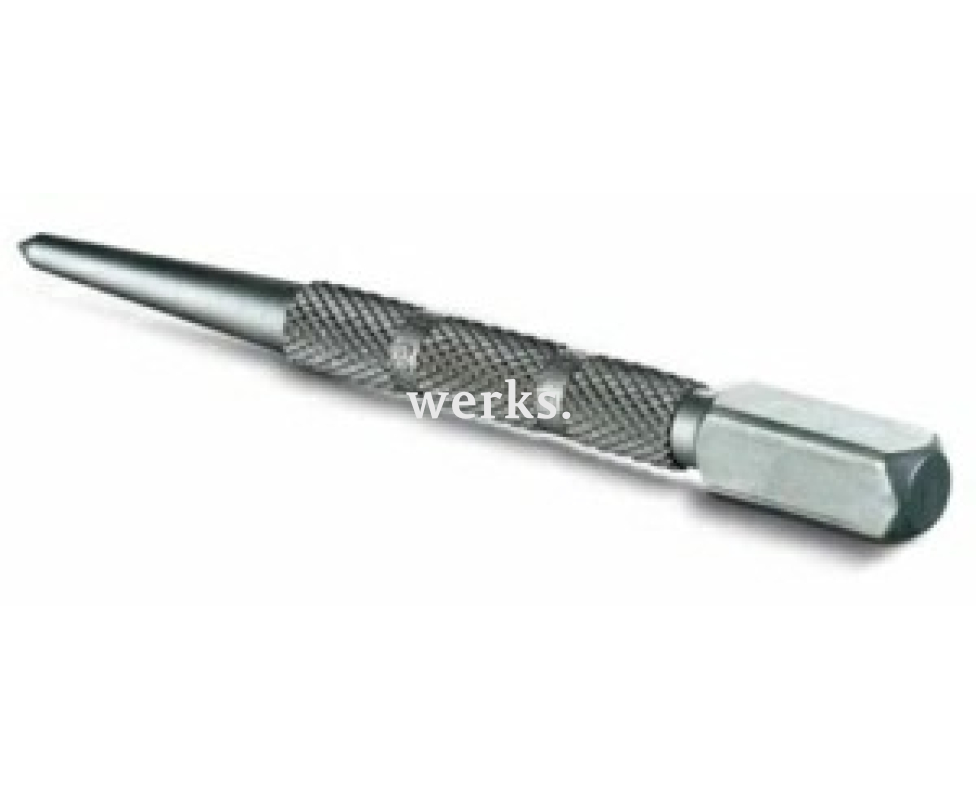 Слесарный кернер Stanley 0-58-120 из инструментальной стали предназначен для нанесения меток (кернов) на металле, пластике и камне перед сверлением. Закаленное острие с углом 90° обеспечивает точное позиционирование сверла и предотвращает его соскальзывание. Накатка на корпусе обеспечивает надежный хват. Ударная головка закалена для устойчивости к деформации при работе с молотком.