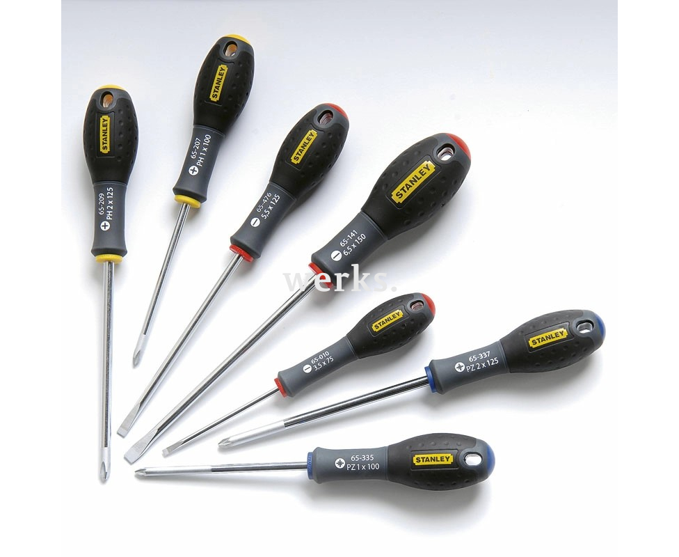 Набор отверток Stanley с различными типами жал. Стержни из хромованадиевой стали. Пластиковый держатель.