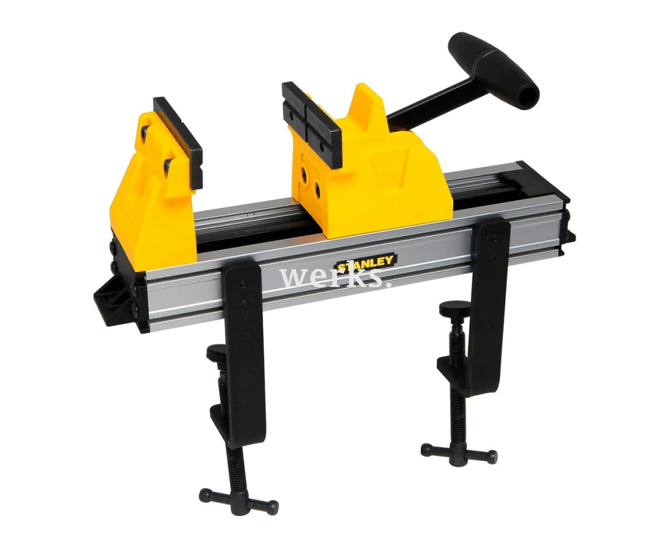 Ручные тиски Stanley для фиксации мелких деталей при пайке или сверлении. Губки из закаленной стали. Винт с трещоткой для быстрой adjustment.