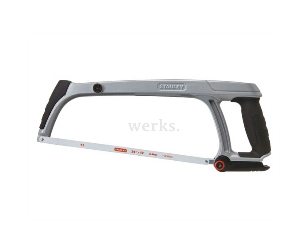 Ножовка по металлу Stanley с рамкой из алюминиевого сплава и регулируемым натяжением полотна. Ручка эргономичной формы снижает усталость. Подходит для полотен длиной 300 мм.