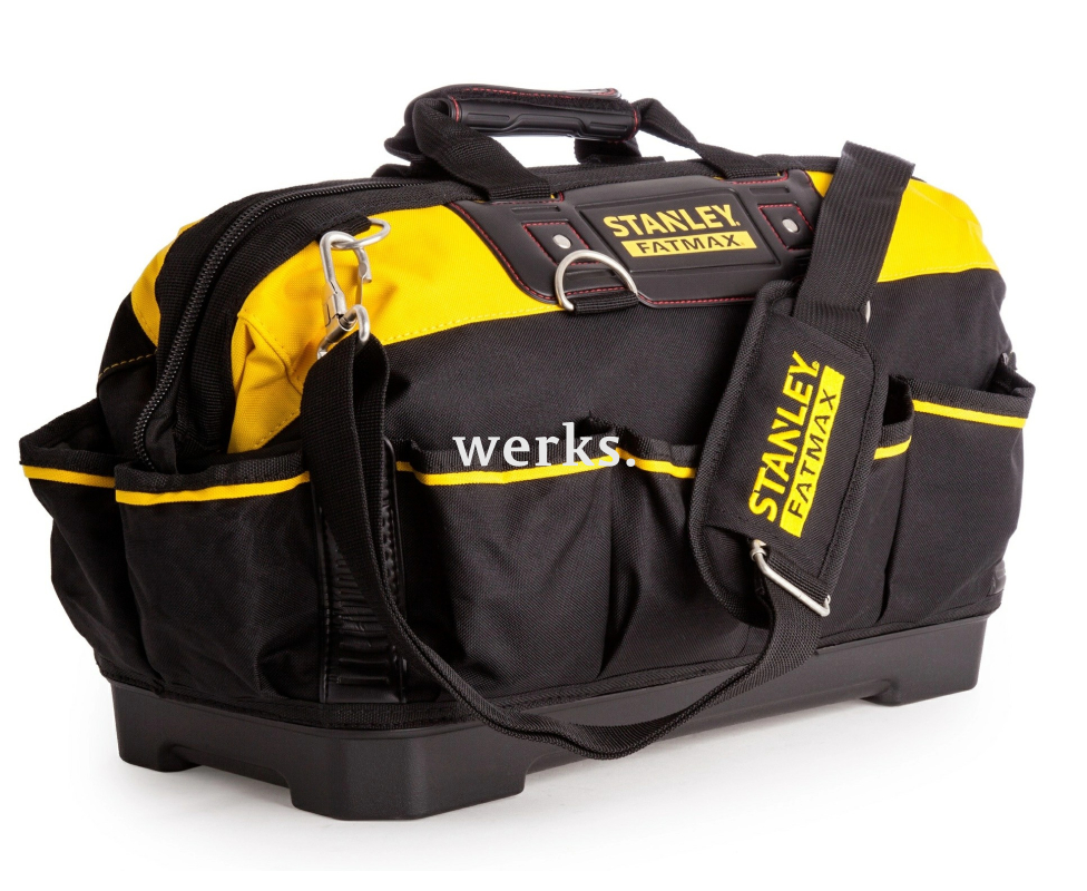 Сумка для инструментов Stanley с жестким дном. Изготовлена из прочного полиэстера. Множество карманов.