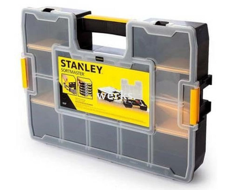 Ящик для инструментов Stanley с выдвижными лотками. Прочный пластиковый корпус. Ручка для переноски.