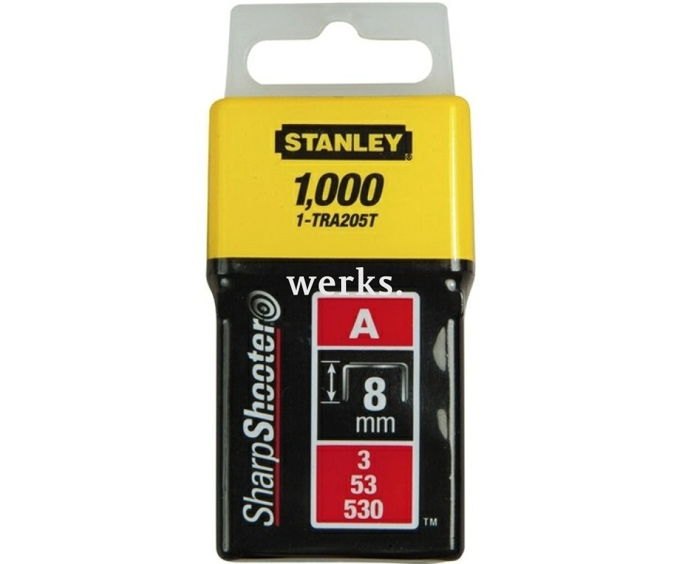 Скобы для степлера Stanley 1-TRA205T типа 53 (глубокая) с плоской спинкой и остро заточенными концами обеспечивают надежное крепление материалов к деревянным поверхностям. Изготовлены из оцинкованной стали, что гарантирует коррозионную стойкость и долговечность соединения. Размер скобы 6 мм (длина ножки) x 11.4 мм (ширина спинки). Упаковка 5000 штук подходит для интенсивного использования в мебельном производстве, упаковочных работах и строительстве.