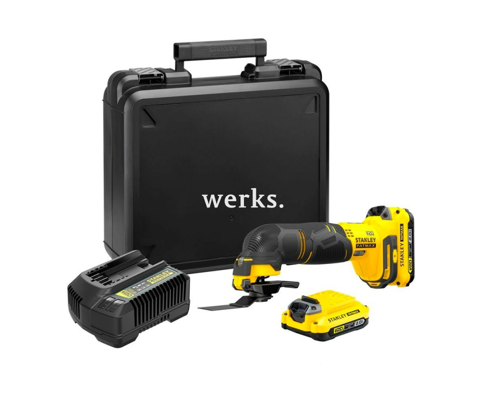 Аккумуляторный мультитул Stanley напряжением 18V. В комплекте несколько насадок. Бесщеточный двигатель.