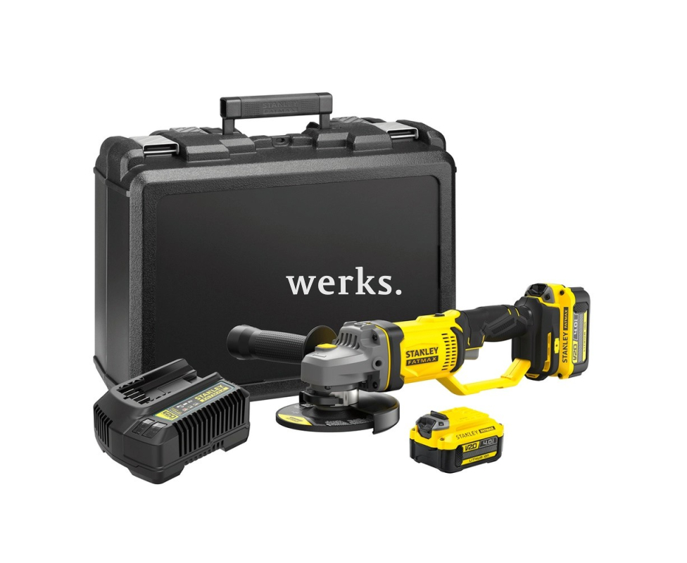 Аккумуляторная углошлифовальная машина Stanley напряжением 18V. Диаметр диска 125 мм. Бесщеточный двигатель.