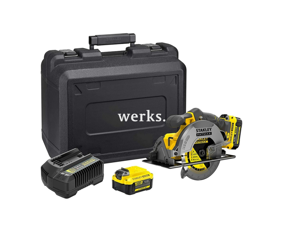 Аккумуляторная циркулярная пила Stanley напряжением 18V. Диаметр диска 165 мм. Глубина пропила 55 мм.