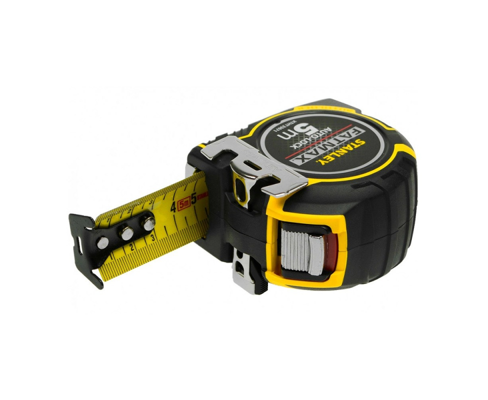 Рулетка Stanley длиной 8 метров. Лента с покрытием. Корпус с резиновыми накладками.