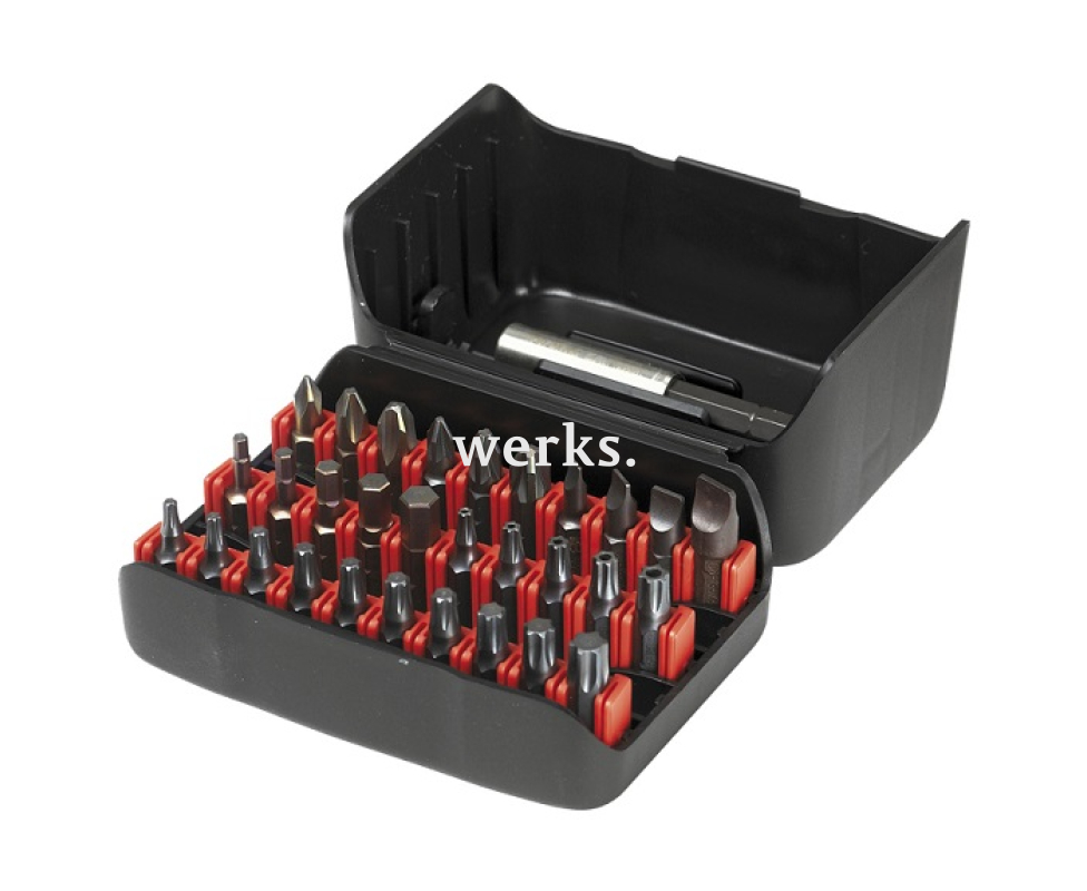 Набор из 30 сменных бит формы C6,3 от PB Swiss Tools, представленный в трех блоках. Оснащен магнитным держателем для бит. Идеально подходит для работы с разнообразными шлицами. Упакован в удобный пластиковый кейс. PB C6.995
