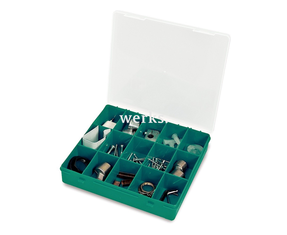 Полипропиленовый органайзер с прозрачной крышкой и 15 отделениями для мелких предметов и крепежа. Оснащен замком-защелкой. Размеры составляют 215х207х42 мм.
