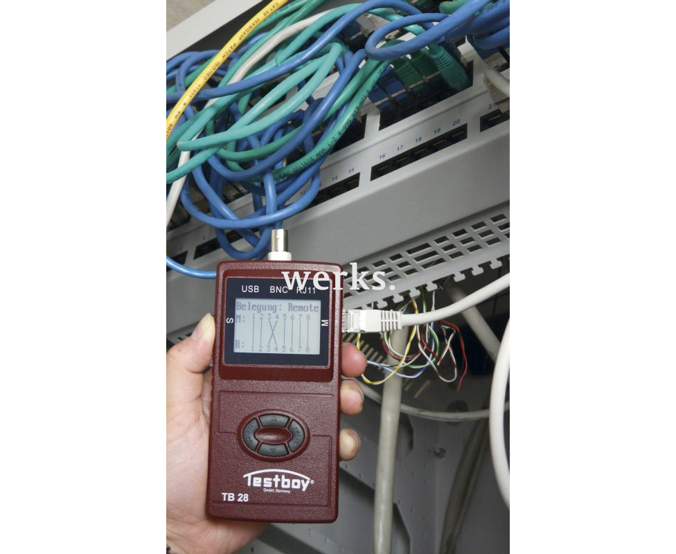 Компактный и удобный многофункциональный тестер для сетевых кабелей с ЖК-дисплеем и тональным генератором. Включает в себя передающее и приемное устройства. Обладает функциями измерения длины кабеля и определения соединительных портов. Способен определять длину кабелей USB, RJ11, RJ45 и BNC. Все распространенные типы кабелей быстро проверяются на наличие обрывов, перекрестных соединений, ошибки в соединениях, короткие замыкания или разделение пар. Питание осуществляется от одной батарейки типа Крона 9 В (6LR61).