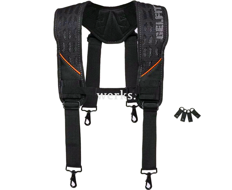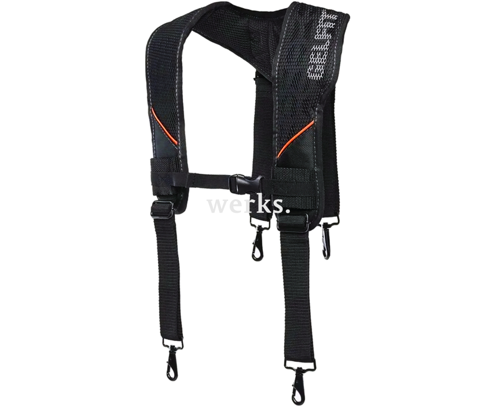 Четырехточечные подтяжки с карабинами для поддержки монтажного пояса TOUGHBUILT. Они могут поддерживать любой ремень шириной до 5 см благодаря специальным лямкам из комплекта. Подтяжки можно регулировать по размеру тела с помощью боковых и нагрудного ремней. На плечевых ремнях предусмотрены крепления для клипс ClipTech ™ Hub ™, а также для подсумков или кобур TOUGHBUILT. Прочная и удобная конструкция лямок с гелевыми подушками GELFIT обеспечивает равномерное распределение нагрузки.