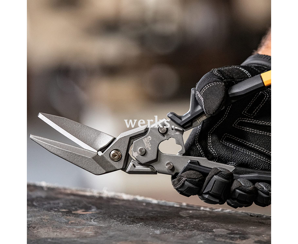 Предназначены для выполнения непрерывных прямых и уходящих влево разрезов. Кованые лезвия с индукционно закаленными режущими кромками сохраняют остроту в 10 раз дольше по сравнению с литыми аналогами. Эргономичная форма рукоятки позволяет резать в двух режимах: с рукояткой назад для максимального рычага и с рукояткой вперед для лучшего контроля. Поворотный болт, установленный заподлицо, не будет мешать материалу во время резки. Металлический замок надежно фиксирует инструмент при хранении и может быть легко зафиксирован одной рукой. Эти ножницы разработаны для удовлетворения высоких требований профессионалов.